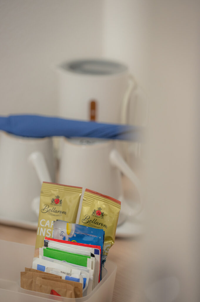 Le sei camere, completamente rinnovate nel 2023, sono dotate di aria condizionata, TV, cassaforte e asciugacapelli. Ogni bagno privato ha doccia con kit di cortesia. In camera trovi bollitore e frigobar; nella struttura, un distributore automatico di bevande e snack sempre attivo. Le prese elettriche con voltaggio internazionale sono presenti in tutte le unità.